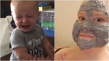 Bé Khóc Lạc Giọng Khi Thấy Mẹ Dùng Mặt Nạ Dưỡng Da